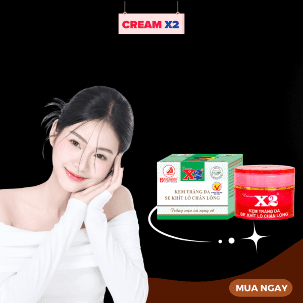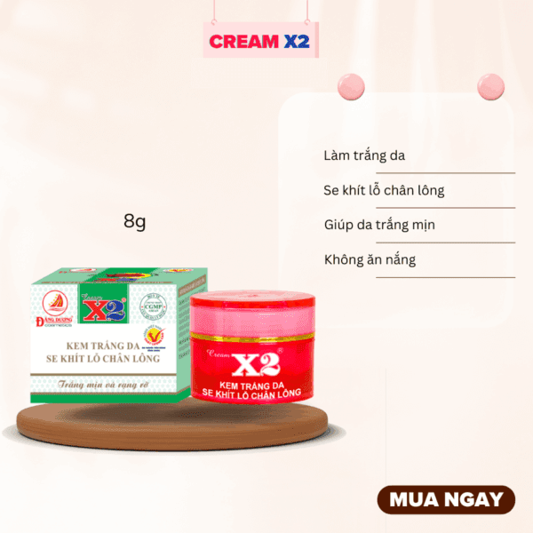 Kem X2 trắng da, se khít lỗ chân lông với công thức cải tiến kết hợp các thành phần từ thiên nhiên như tinh chất Ốc sên, bột Ngọc trai, Sữa Dê và lô hội giúp cân bằng độ ẩm cho da, dưỡng trắng da hiệu quả. Các viatmin E, C, B3 giúp nuôi dưỡng da từ sâu bên trong, làm se khít lỗ chân lông, giúp da mềm mại, săn chắc.